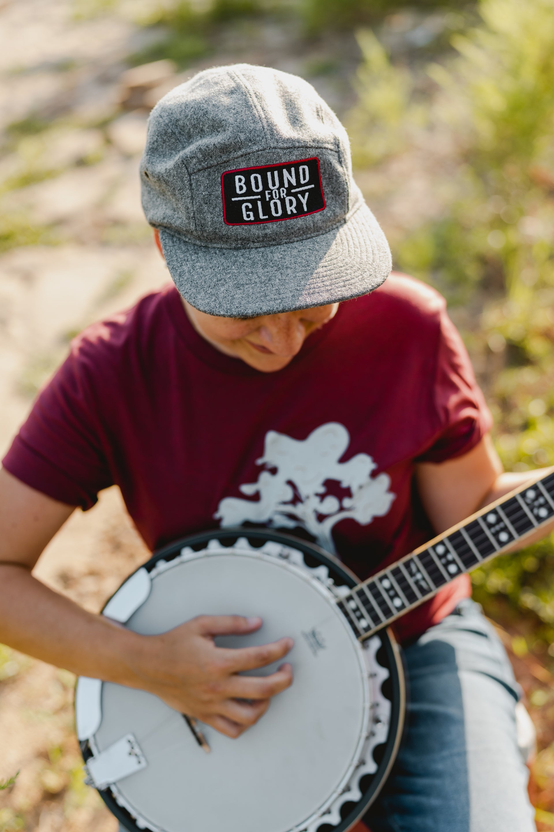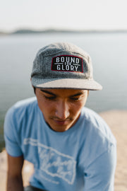 This hat is Bound For Glory and you will be too! Made with premium Melton wool, this five panel flat billed heathered charcoal hat features an adjustable leather strap with brass eyelets and closures. Perfect for keeping warm on cooler mornings or around a campfire.
