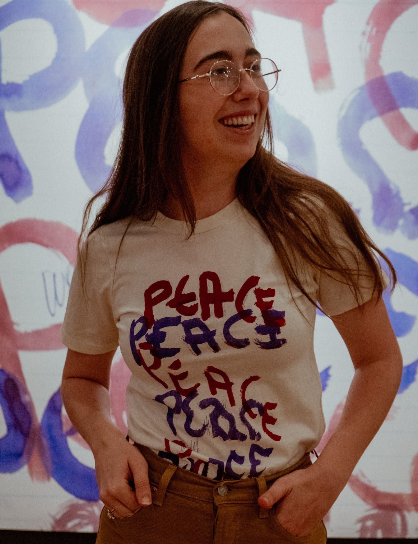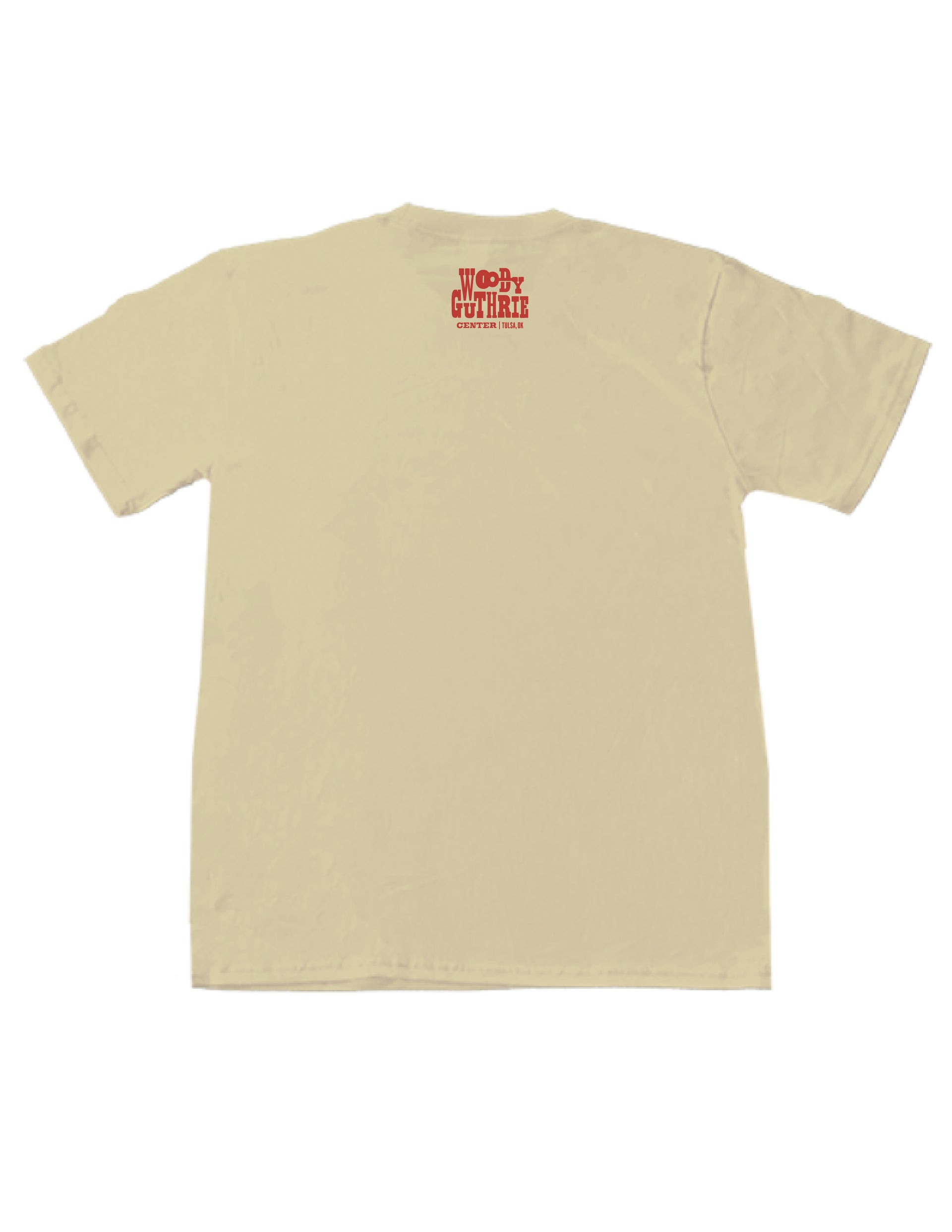 Featuring Woody Guthrie's handwritten call for peace, currently on display in our People Are The Song exhibit, this unisex shirt is American-made by Royal Apparel.