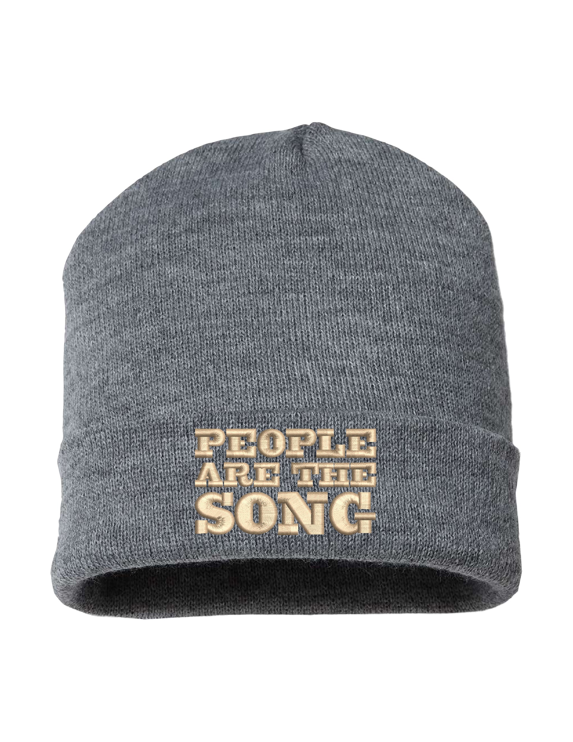 Inspired by our Woody Guthrie: People Are The Song exhibit, this unisex heather-grey cuffed beanie is American-made by Royal Apparel.