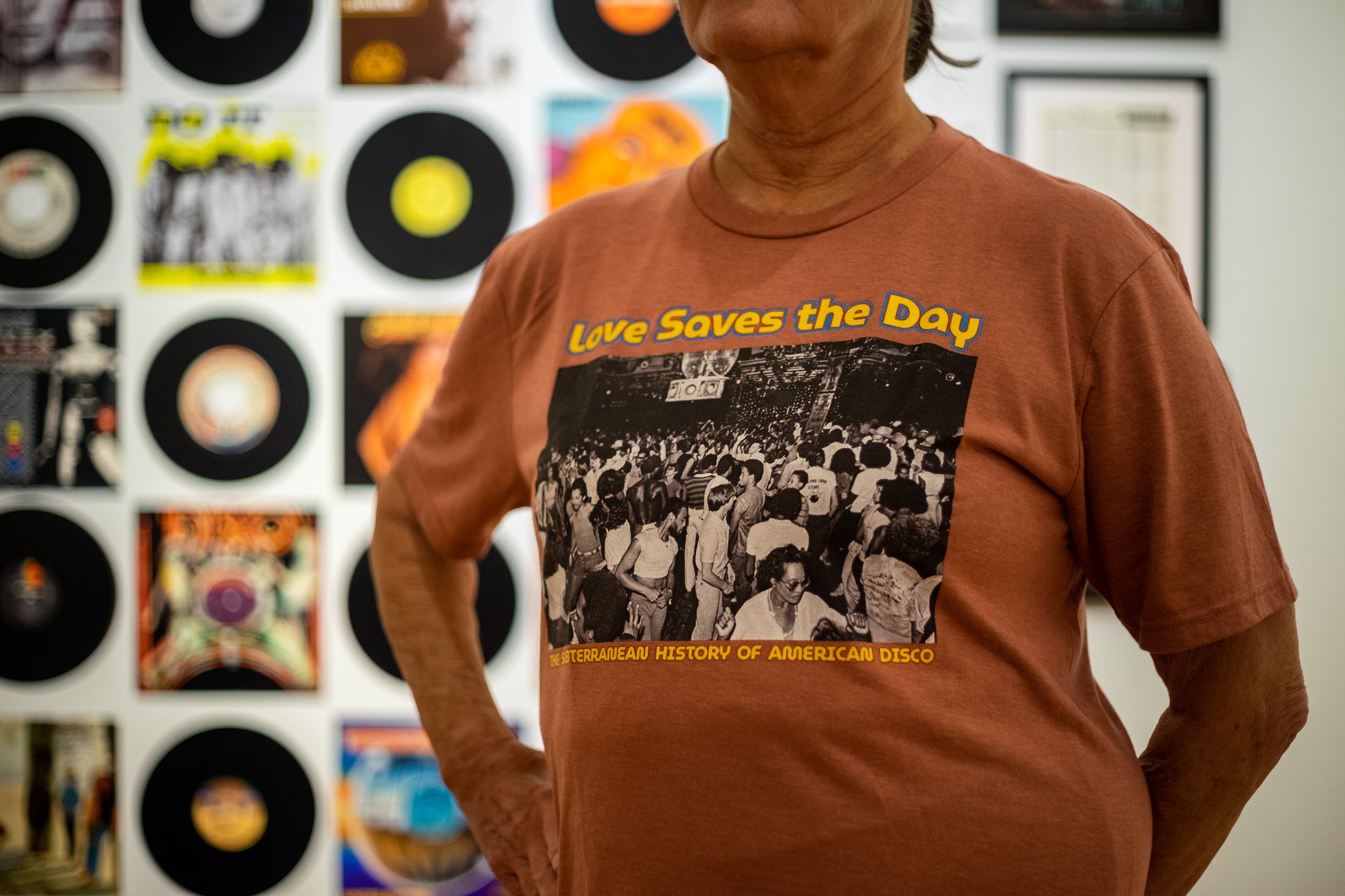 This limited-run exhibit t-shirt is a must-have for any disco enthusiast. Featuring a cool design with the title of the exhibit "Love Saves The Day: The Subterranean History of American Disco" and a photo courtesy of Bill Bernstein, it's the perfect souvenir to remember this groovy exhibit on display at the center.