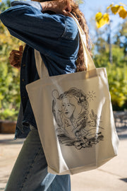 Featuring a beautiful illustration by Woody from the Woody Guthrie Center archives, this tote is made from heavy weight 100% cotton canvas. It features reinforced shoulder straps, one large main compartment, and Woody's signature on the back.
